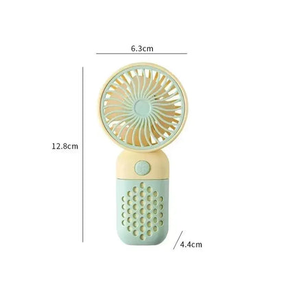 Fabricado con material ABS resistente y con un potente motor de 3 W, este ventilador ofrece un enfriamiento rápido y eficiente con un interruptor de una sola velocidad. Sus aspas extraíbles facilitan la limpieza, y la función de aromaterapia permite impregnar el aire con aromas relajantes. Con múltiples opciones de colores vibrantes, este mini ventilador combina practicidad y personalidad.