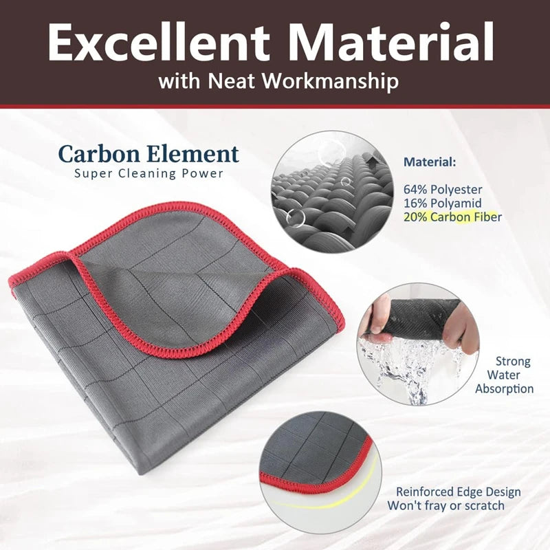 - Advanced Carbon Fibre Technology: Each cloth is woven with a high-performance blend of 64% polyester, 16% polyamide, and 20% carbon elements, delivering exceptional oil-lifting and dirt-trapping power.